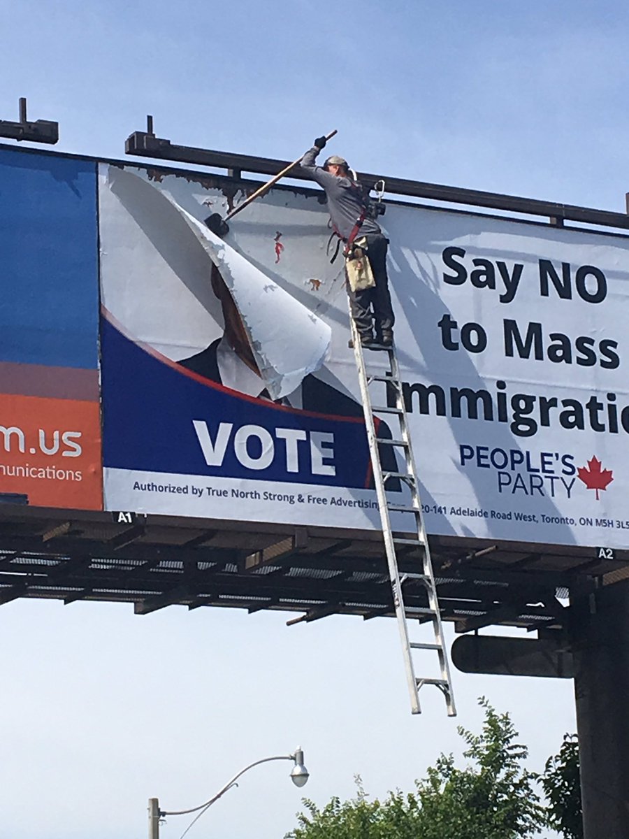 The signs went up in Toronto, Halifax, Quebec City and Winnipeg late last week.