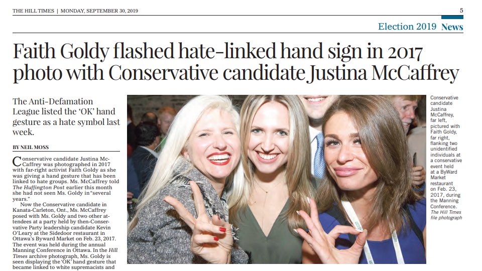 Faith Goldy flashing an alt right hand sign while posing with her BFF, Conservative candidate Justina McCaffrey